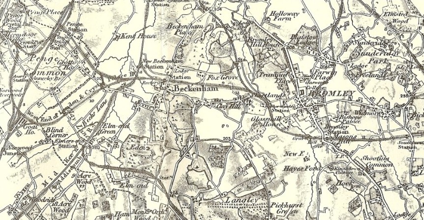 There is still no Calmont, Ashgrove or Coniston Roads or Warren and Madeira Avenues and what is now Farnaby Road was an unnamed, unfenced and presumably unmade track across the meadows.