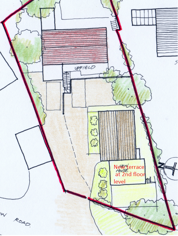 As with Sunset Hill, planning conditions will be important especially regarding landscaping – otherwise there will be a car park at the front of these two properties (Upfield and Sunset Hill) for seventeen cars, and it will look terrible.