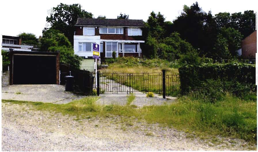 Front elevation of Upfield and the neighbouring garages of Romany Ridge