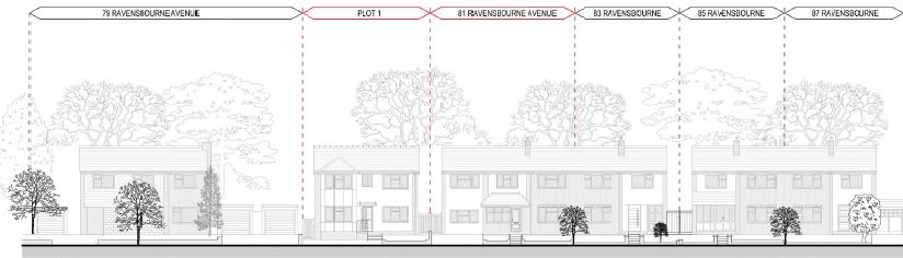Proposed street elevation from Ravensbourne Avenue (north-east)