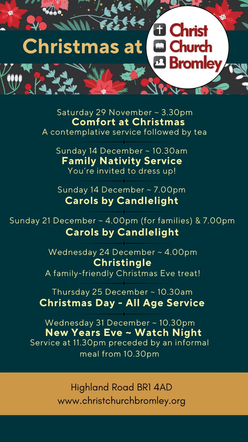 Information on Advent and Christmas Services at Christ Church Bromley can be found at https://www.christchurchbromley.org/christmas